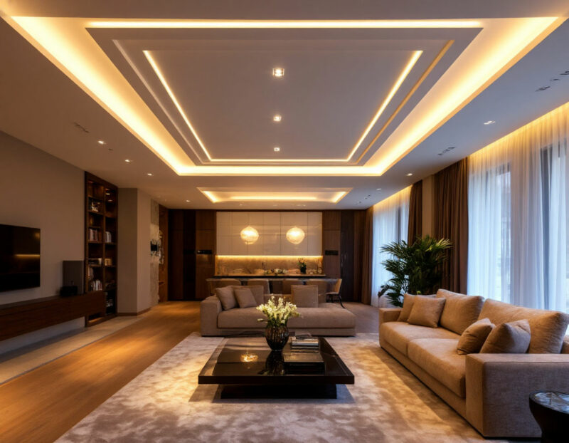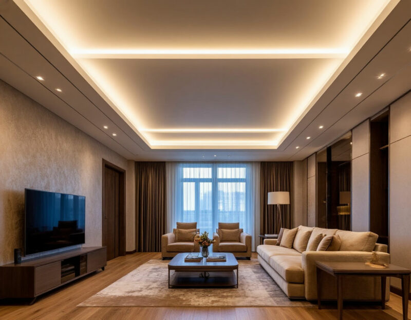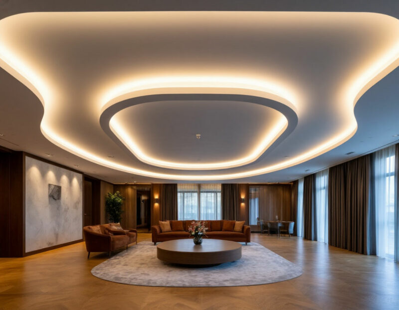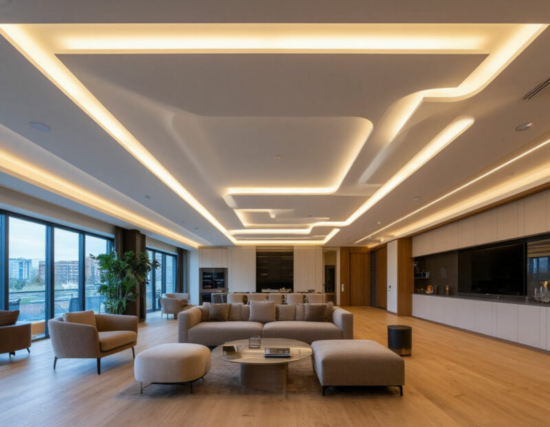 - Возможность зонирования: Контурное освещение позволяет визуально разделить пространство на функциональные зоны.