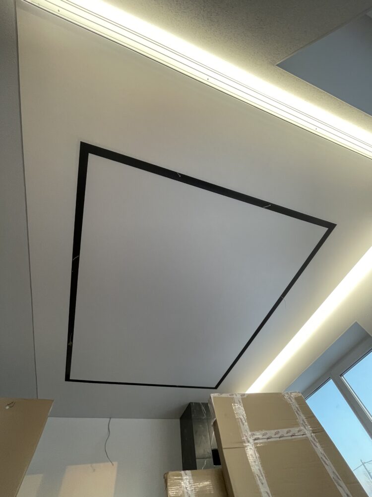 На основе полученных размеров и выбранных материалов, на специализированном производстве изготавливается полотно натяжного потолка, которое будет точно соответствовать конфигурации вашего помещения.